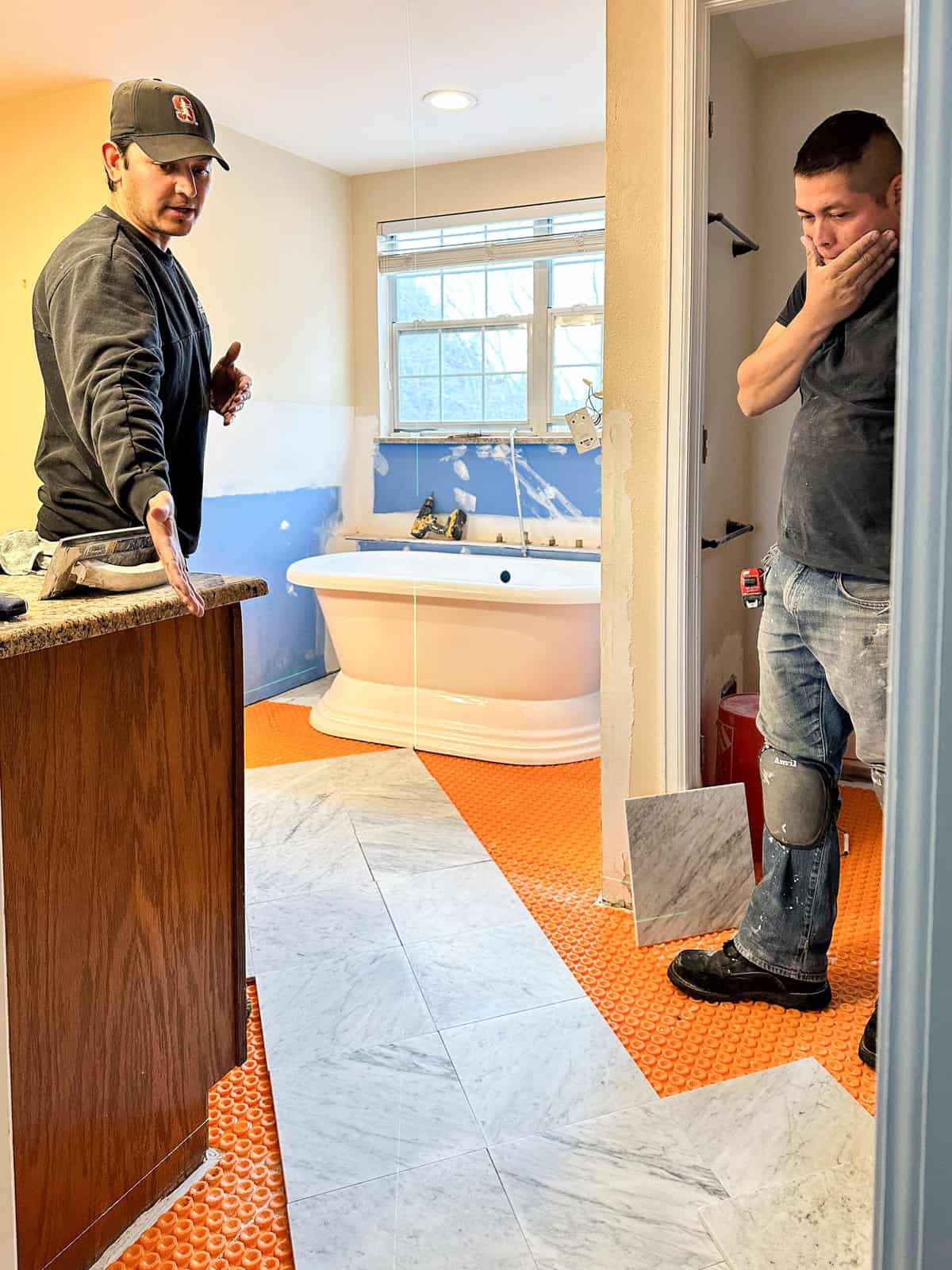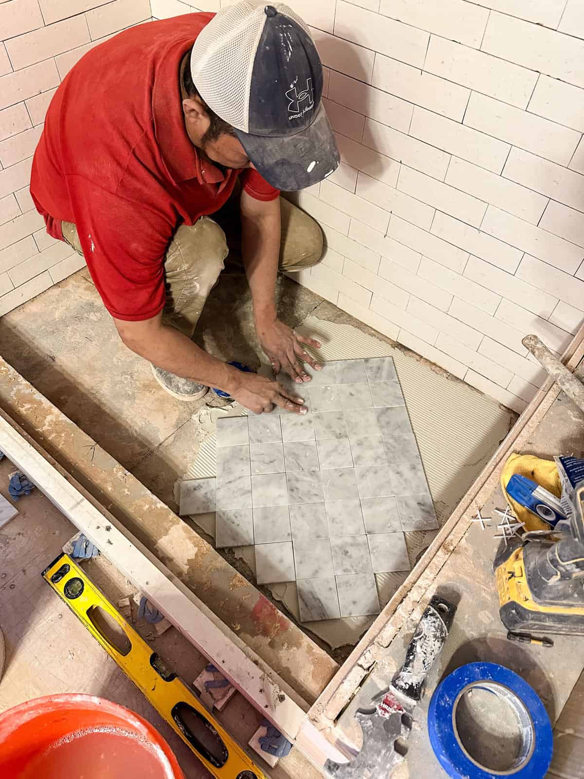 Laying Out the Carrara Marble Floors